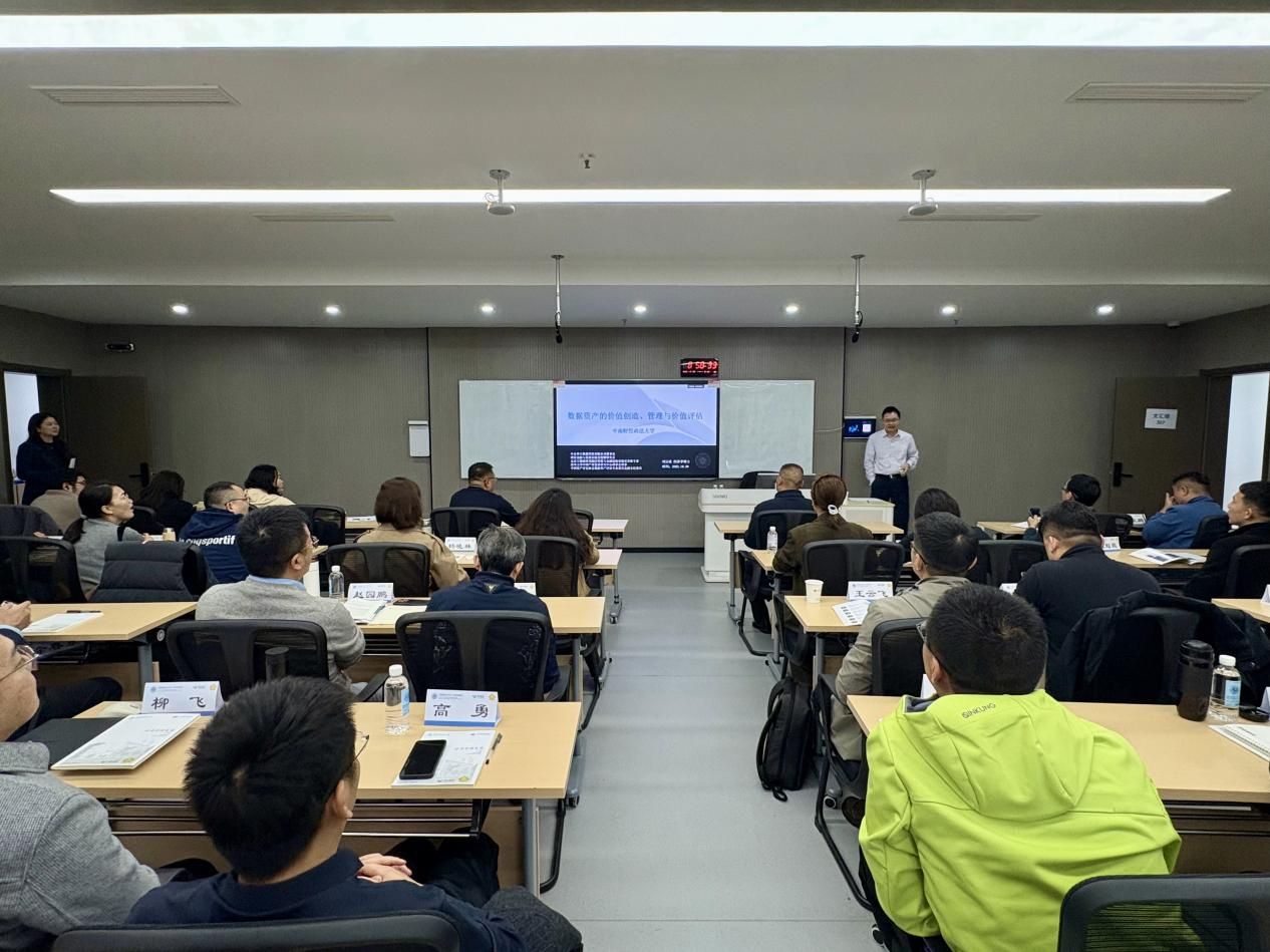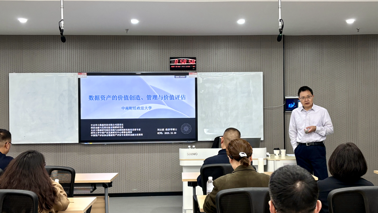 中企华大数据科技公司董事长兼中企华资产评估公司副总裁刘云波博士以《数据资产的价值创造与价值评估》为主题,为学员们带来了首日的前沿课程。他凭借其在北京大学、清华大学和中南财经政法大学的学术背景以及在德勤中国的资深从业经验,系统地讲解了数据资产的价值管理框架和价值评估方法体系,搭建起数据资产评估的完整知识架构,让学员深刻把握数据要素市场化背景下,数据资产评估的发展趋势与实践要点。
