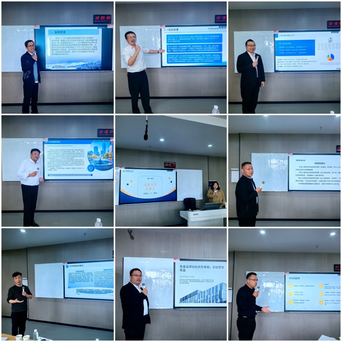 本次培训的重头戏——学员结业汇报会由中南财经政法大学工商管理学院教授文豪主持,他与河南省资产评估协会副会长兼秘书长鲍国俊、河南财政金融学院教授(第三期高端班班主任)王建军共同组成评委团。15名学员依次就自己撰写的评估案例进行分享发言,充分展现了本期培训的学习成果与参训学员的专业素养。