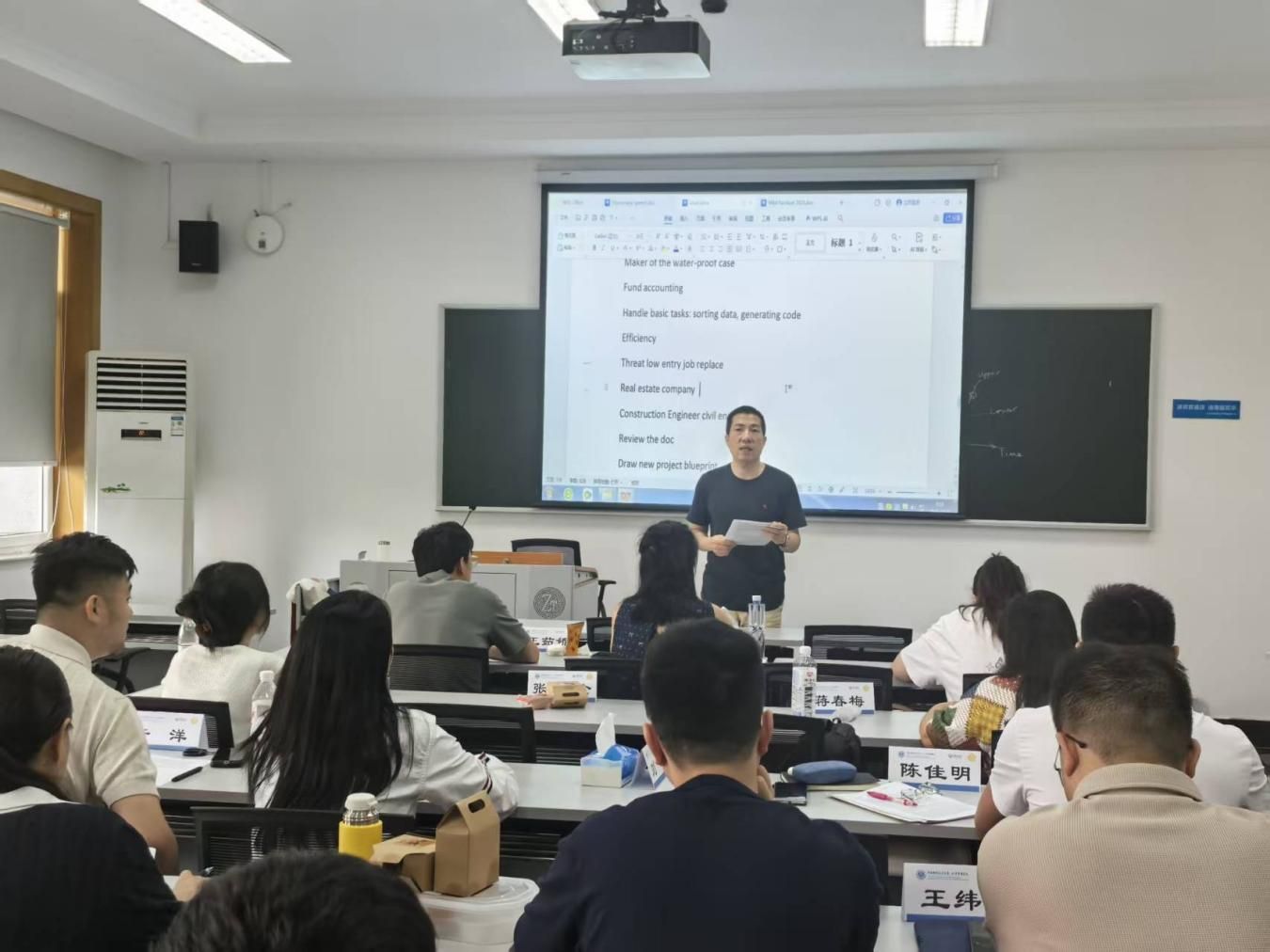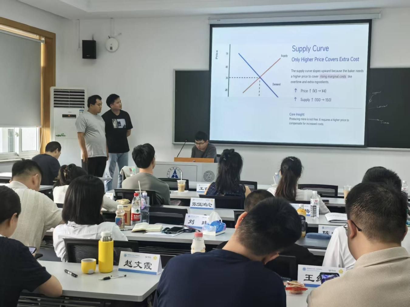 在国际商务环境中,语言能力不仅是工具,更是文化理解与商业信任的基石。《商务英语》主讲教师居建恩拥有多年海外学习经历和丰富的商科教学背景,课程内容远超传统英语教学的语法与词汇范畴,聚焦于MBA学生高频使用的商务场景:从宏观经济形势到具体经济事件,从异国文化到团队管理,居建恩老师通过模拟相关情境,通过听力、阅读等全方位训练,引导学生转换思维方式,训练同学们在高压环境下清晰、自信地表达观点。课程融入了大量真实语料,提升了语言应用能力,帮助学生熟悉地道表达与专业术语,进一步拓宽了国际视野。同时,他引导同学们从自我介绍、AI在工作中的实际运用及弊端等方面的陈述,拓展常用词汇,在每名同学的工作背景和发言内容中找到高频词汇,遣词造句提升运用能力。