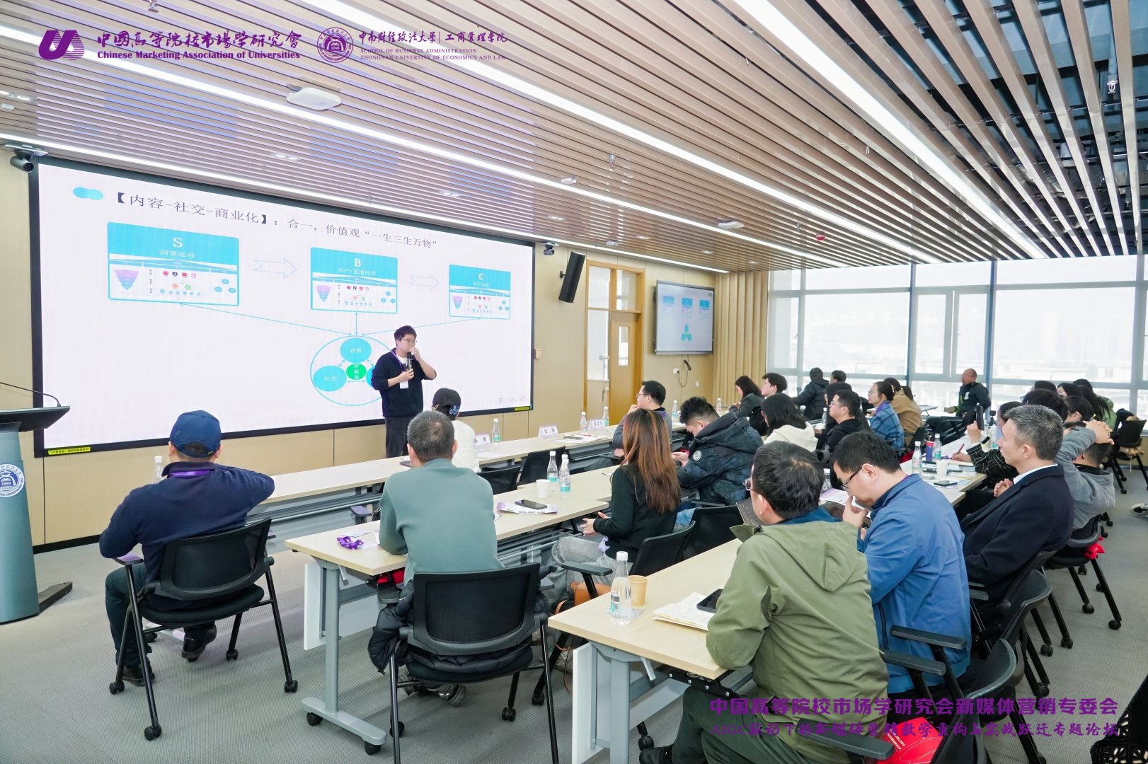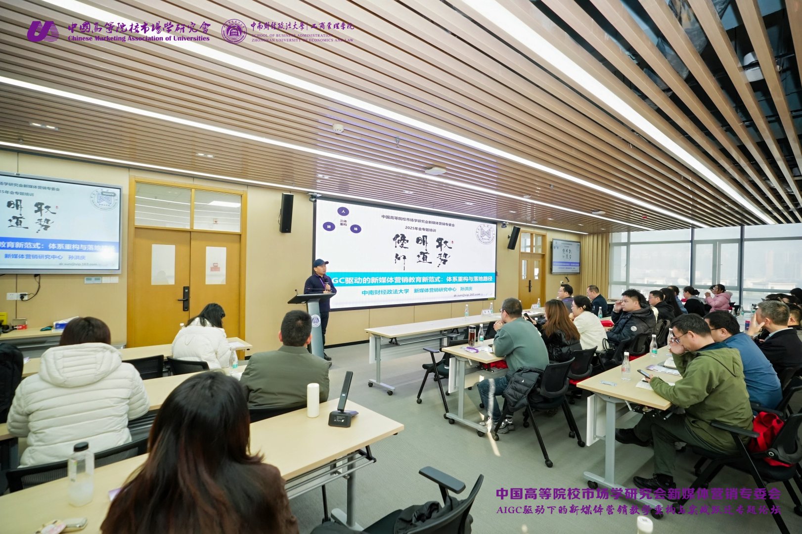 2025年12月7日,由中南财经政法大学新媒体营销研究中心主办的“AIGC驱动下的新媒体营销教学重构与实战跃迁”专题论坛在中南财经政法大学南湖校区文翰楼东718室成功举办。论坛汇聚学界与业界专家,围绕人工智能生成内容(AIGC)如何重塑新媒体营销教学与实践展开深度对话,吸引了来自高校、企业及相关领域的师生、校友与从业者参与。