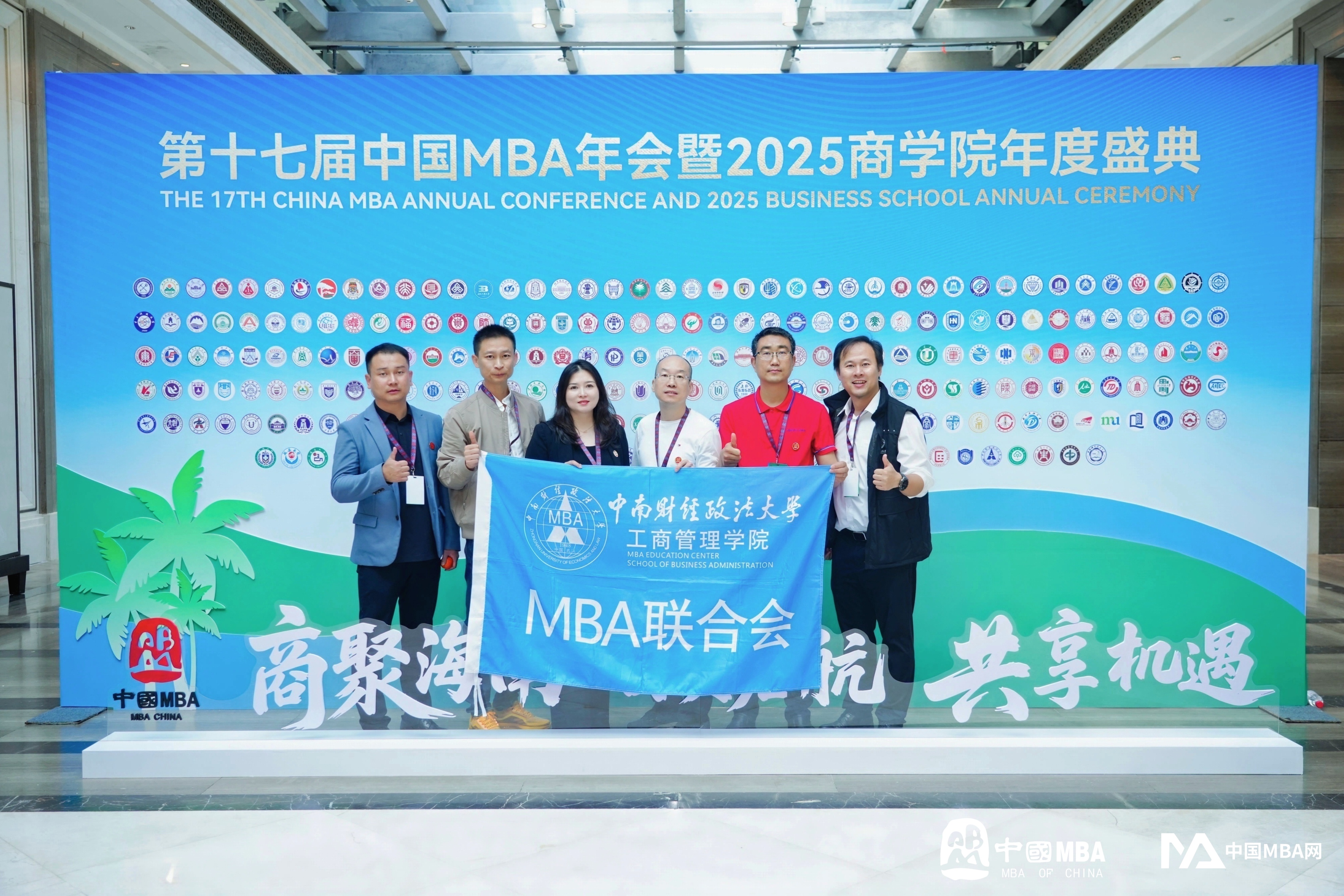 2025年12月18-20日,第十七届中国MBA年会暨2025商学院年度盛典在海南海口成功举办。中南财经政法大学工商管理学院MBA招生与品宣部主任熊敏老师、2015级EMBA校友左浩、2019级MBA校友周炼、2023级MBA学生秦修钰、2024级MBA学生童德、2025级领航MBA学生何坤代表学校参加了本次年会。