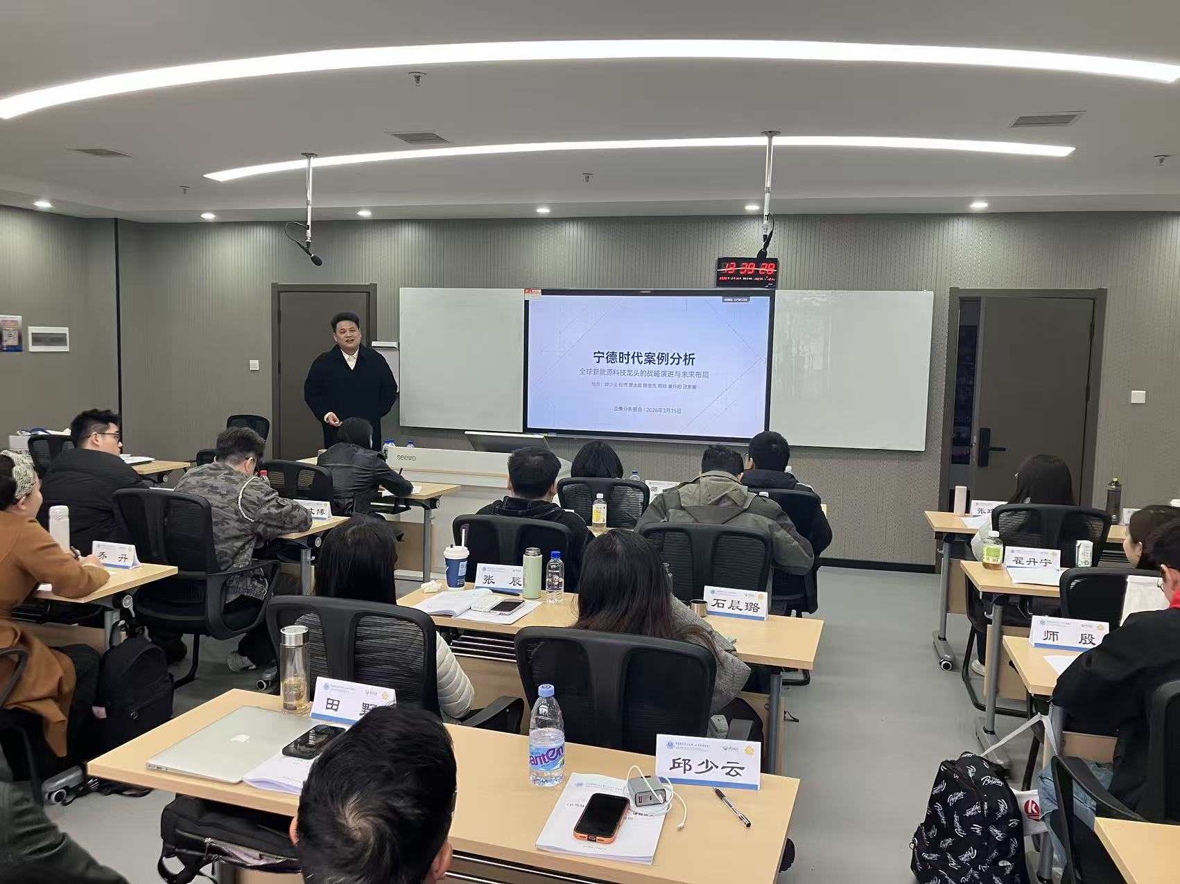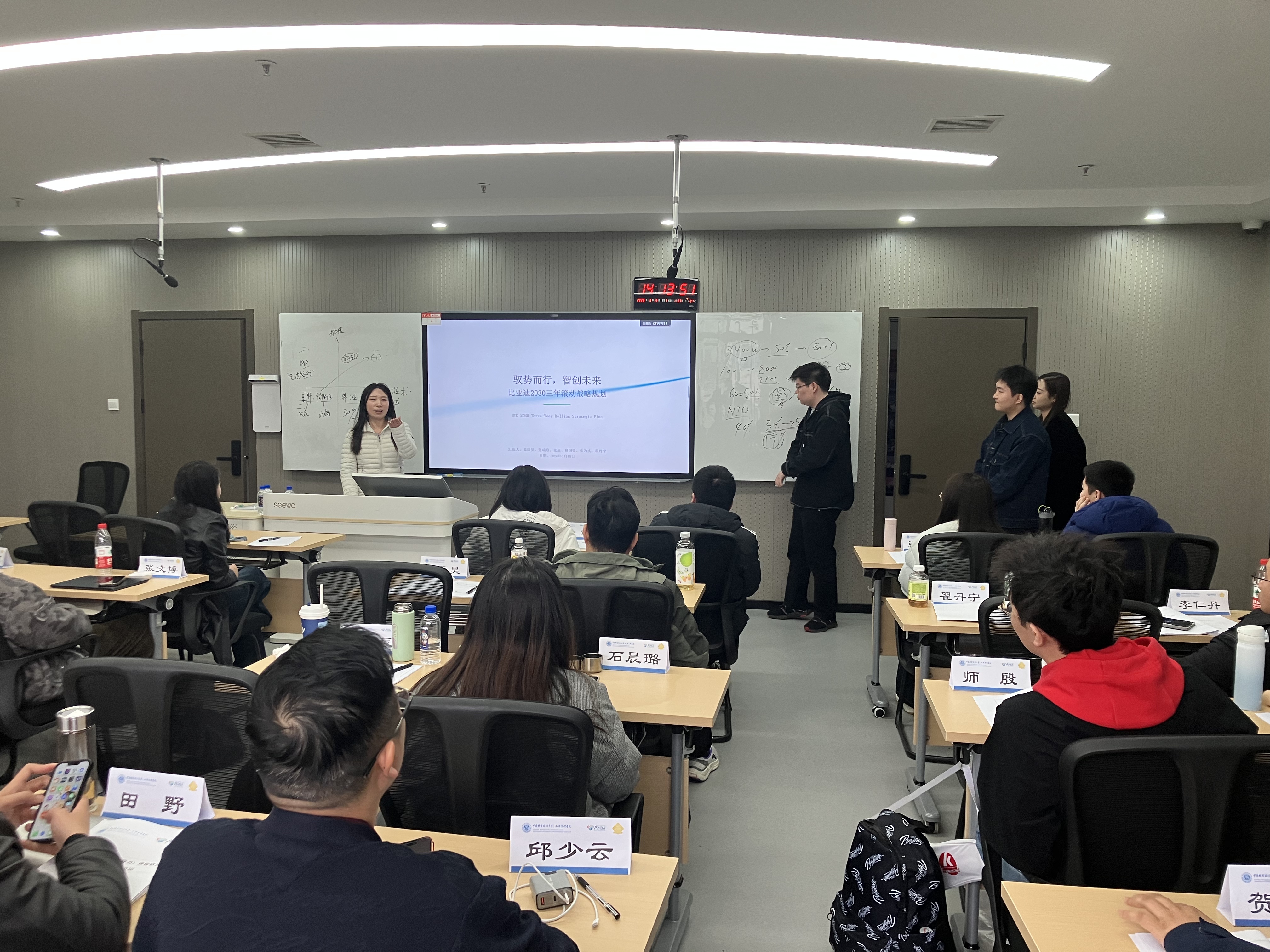 汇报分享环节,各小组站在企业家的思考角度为老铺黄金、宁德时代、比亚迪、宇树科技、安克创新等5家企业面向2030年的战略规划建言献策。在这场头脑风暴中,我们不再是单纯的理论学习者,而是真正的战略思考者,每一次观点的碰撞,每一次战略的推演,都让我们对不同行业的发展逻辑有了更深刻的理解,对企业家精神有了深深敬畏。有同学感慨,这不仅是对5家企业的战略分析,更是对自身所在企业发展的一次镜像思考,让自己能够以更客观、更系统的视角审视所在企业的战略选择。