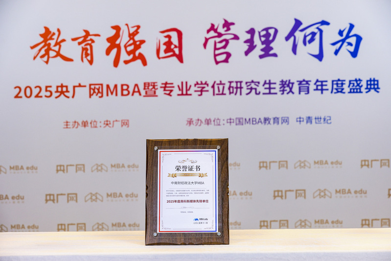 喜报丨中南财经政法大学工商管理学院MBA项目荣获2025央广网MBA年度盛典多项殊荣
